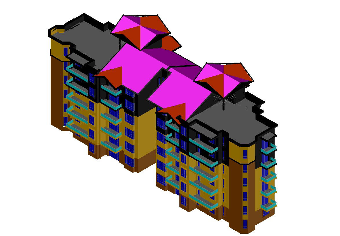 Isometric view design of multi-story residential apartment design AutoCAD Drawing download for free.