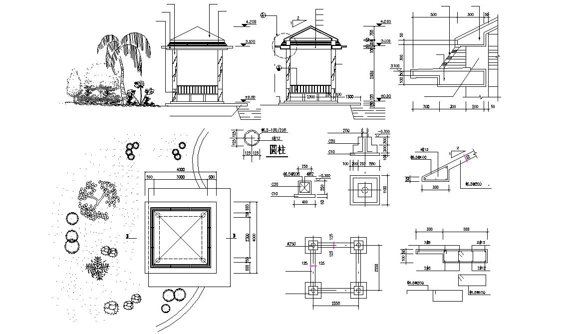 Gazebo Construction CAD Drawing; download free AutoCAD file of gazebo CAD drawing shows column plan, top view plan, and pillar design with dimension design in AutoCAD format.