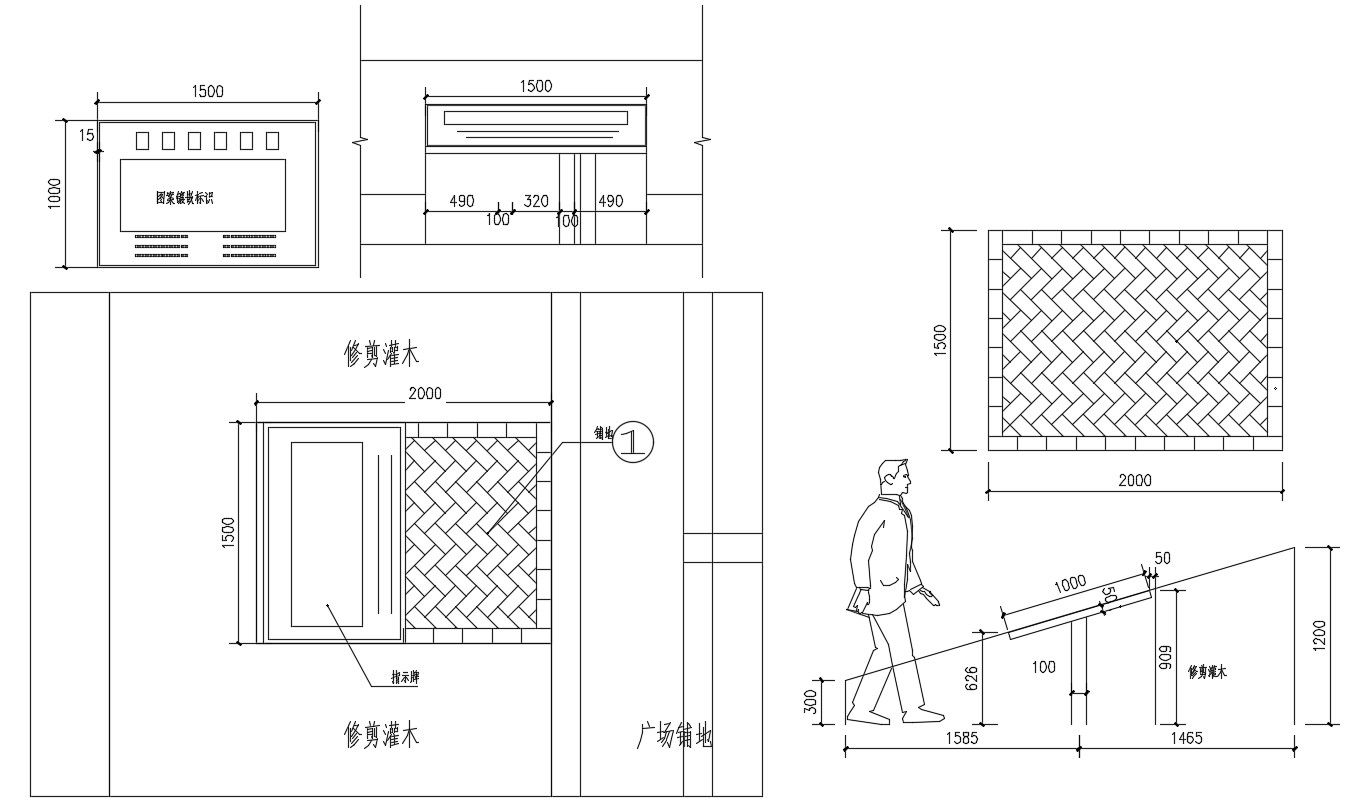 Brick block paving pavior shows the details of the man walking through the road. It also has shown the dimension details. Download it for free.