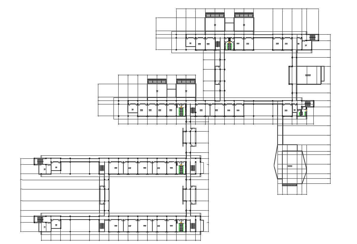 The shopping mall cad plan shows the details of the floor layout along with shops and staircase details. Download the file for free.