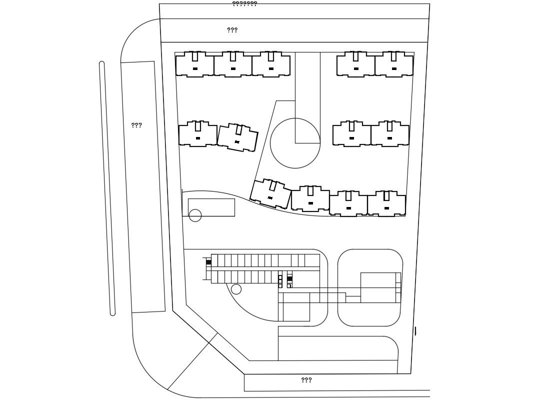 Residence area design plan that shows existing houses details in the area along with parking space area, boundary, road networks, and various other units details download CAD file for free.