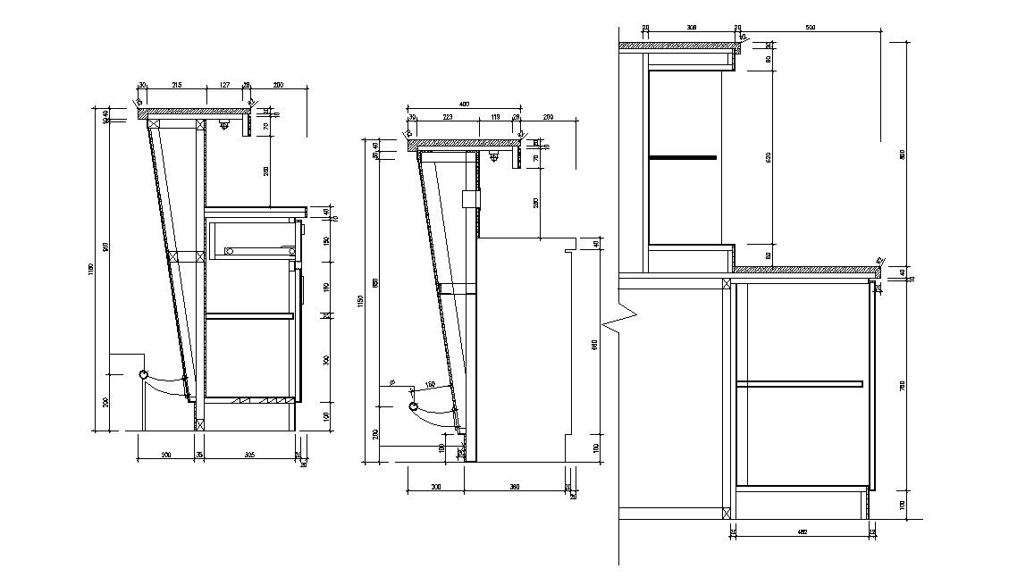 Reception Table Furniture Design AutoCAD File; this is the detail of the reception table with section, cabinet detail, dimension, and front side detail, CAD file format.