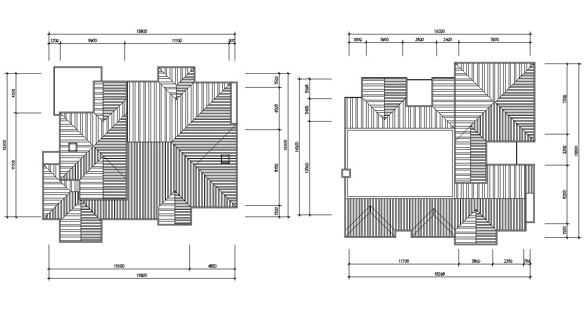 The roof plan shows the details of the roof of the house. It also has shown the top view of the house along with the dimension details.