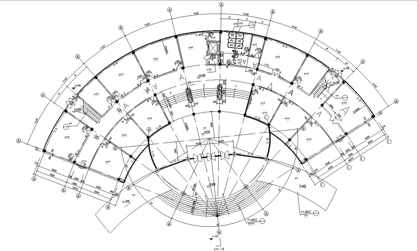 Modern Plan Of Commercial Building DWG Format; this is the floor plan of a commercial building with the centerline, dimension, washroom block, and main huge entry, in DWG file drawing.