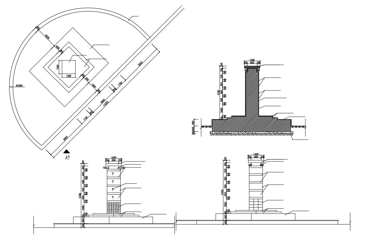 Structure Foundation Footing Drawing CAD File; this is the foundation detail plan, elevation, section with dimension,in 2D format.