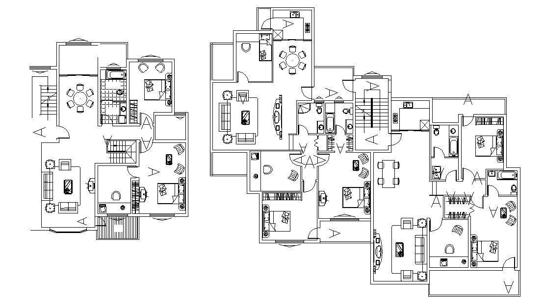 House cad plan includes the details of the 2bhk and 3bhk house with fully furnished. It also shows the bedroom, bathroom, kitchen, dining area, living room, balcony, and many more.
