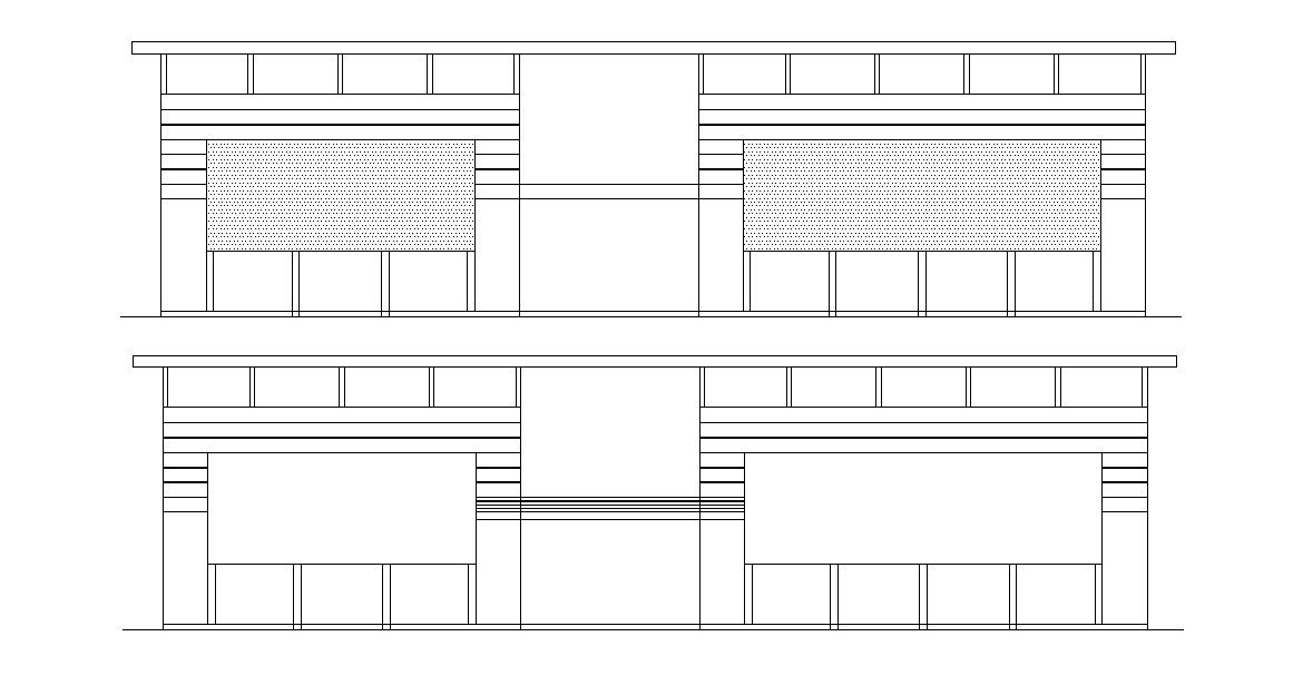 The building plan includes the details of the front elevation and the backside elevation of the building. Download the file for free.