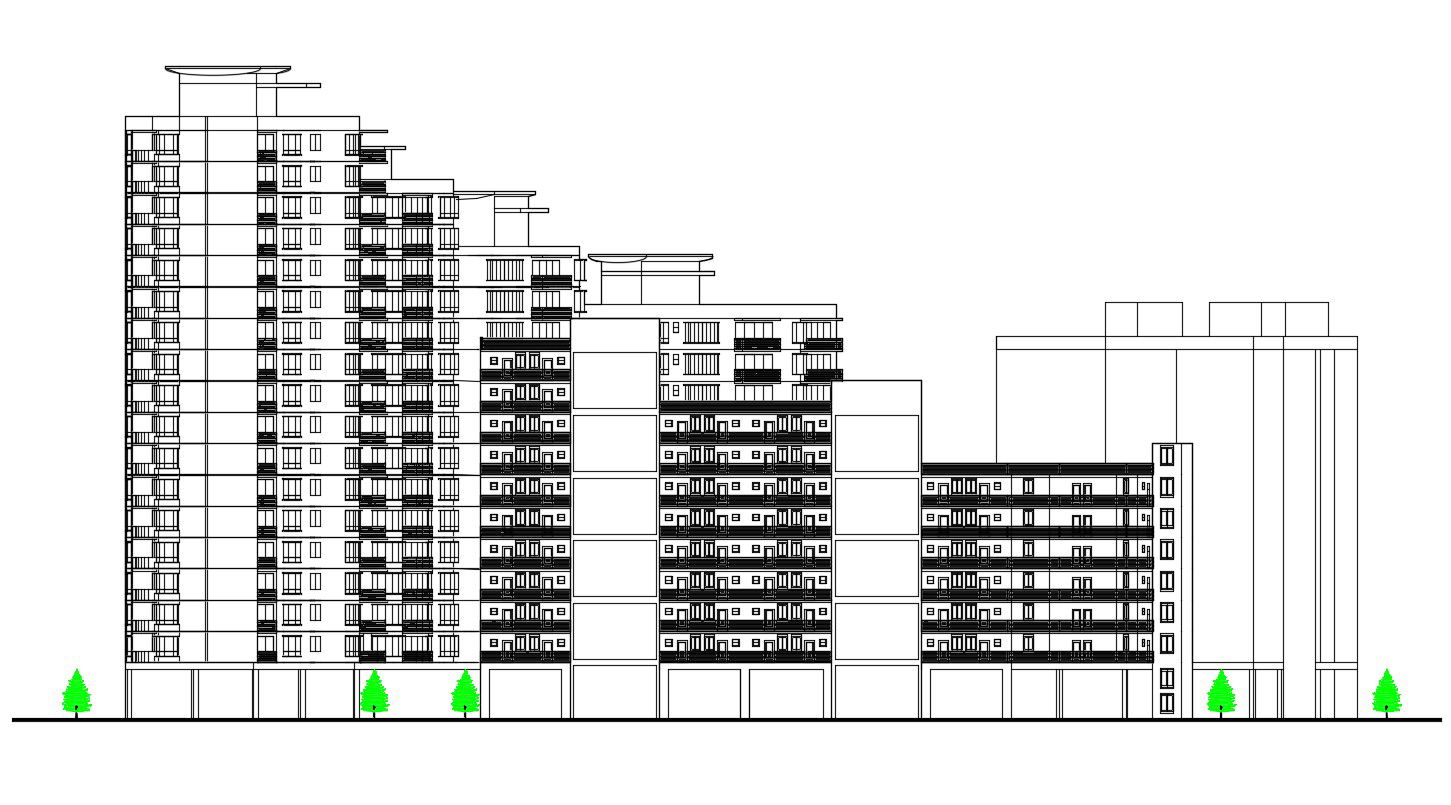 CAD drawing details of multi-story residential apartment side elevation design file download for free.