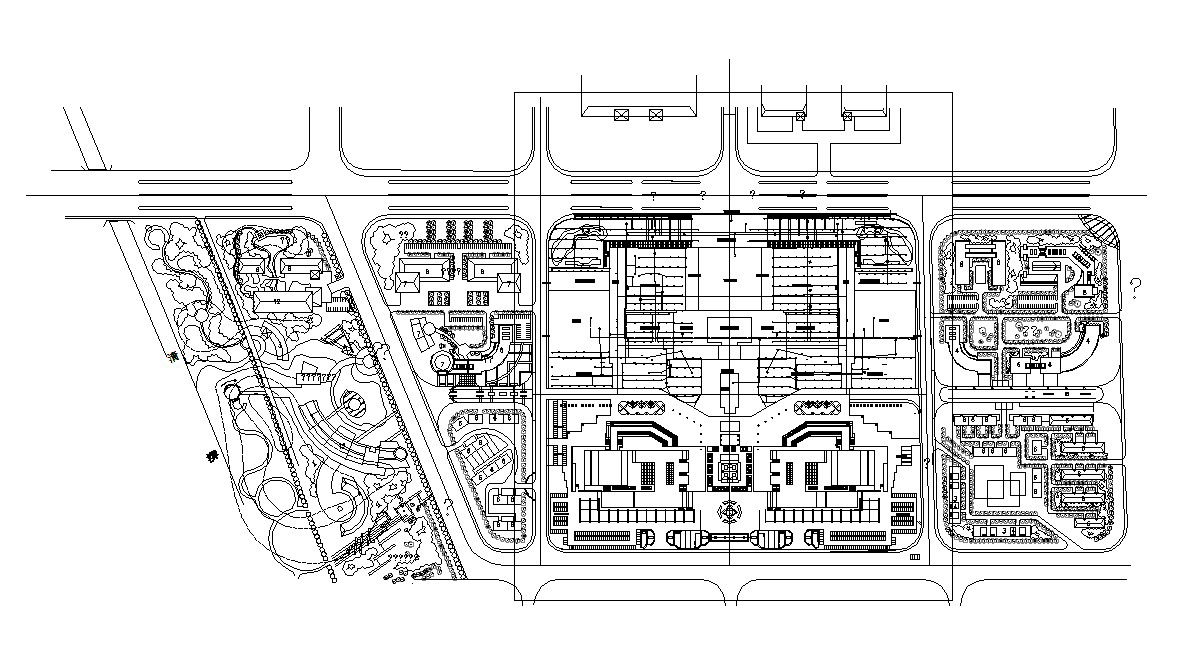 Landscaped Master Plan For Housing AutoCAD File; this is the master plan of houses area includes the main city road, different zone of a residential area, plantation, parking area, and some open space, in CAD File format.