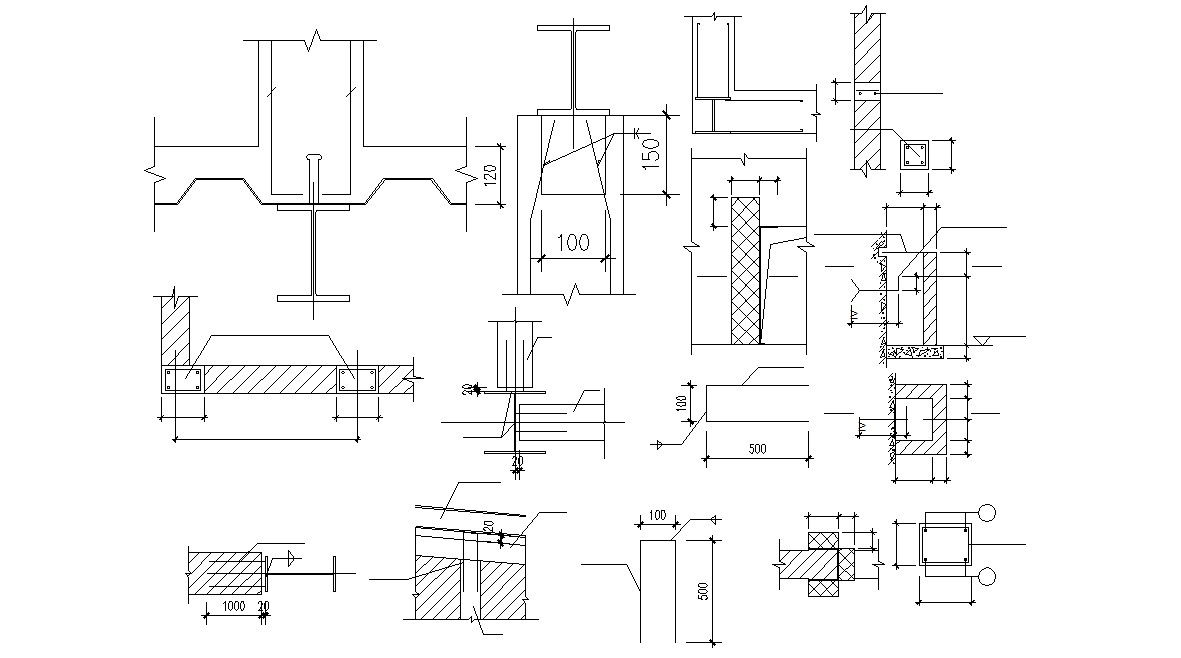 Beam Reinforcement Section Drawing AutoCAD File; this is the structure detail of beam and bars joints, I section detail and much more, in cad format.