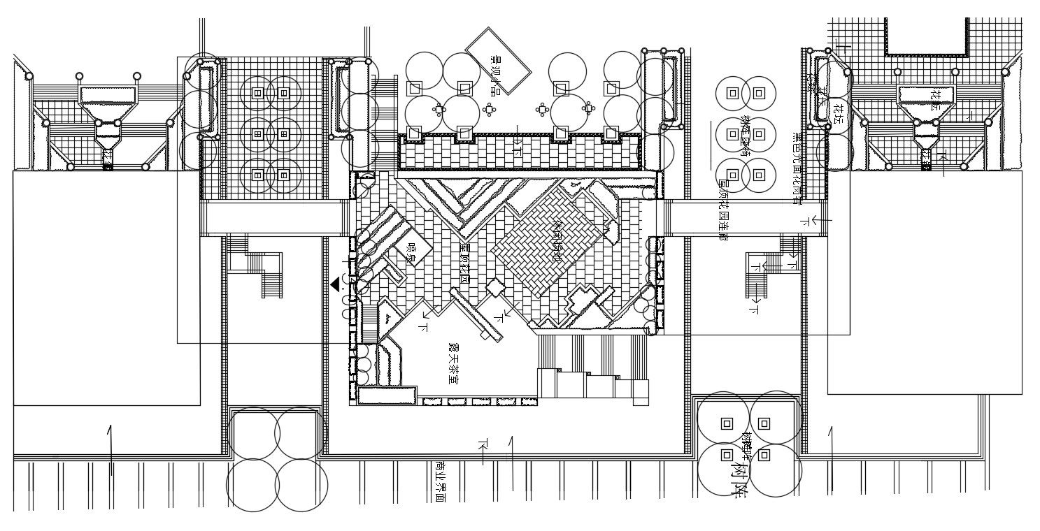 Landscaping details of a commerce building area design that shows tea room details, pavement design, room garden corridor, flower bed, and various other blocks details download the file.