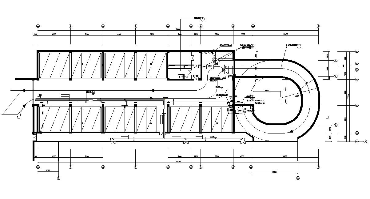 Ground Floor Parking Layout Plan Of Commercial Building AutoCAD File Free Download; this is the commercial building parking layout with working drawing, dimension, centerline, stair foyer, backside passage with openings, driveway, and R.C.C retailing wall, texting details, in DWG format.