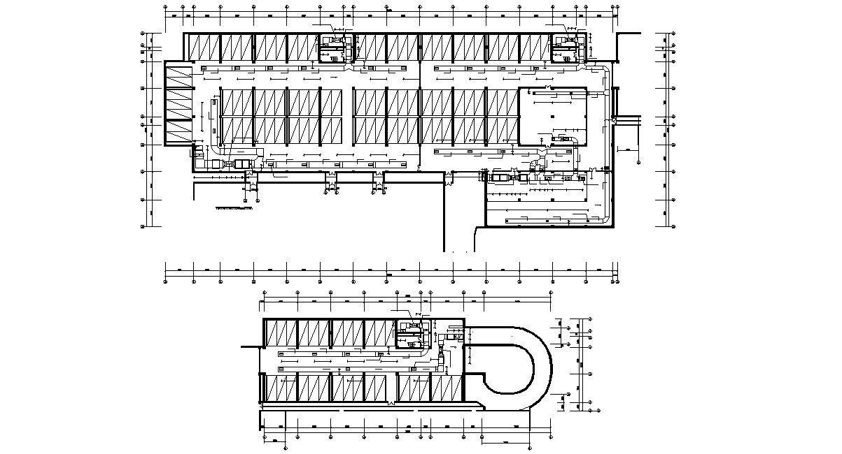 Commercial Parking Layout Plan With Working Drawing AutoCAD File; this is the two-floor parking detail includes working detail, centerline, driveway, indication arrow of driving, backside passage with many openings, R.C.C retailing wall, staircase foyer detail, and much more other detail related to parking,