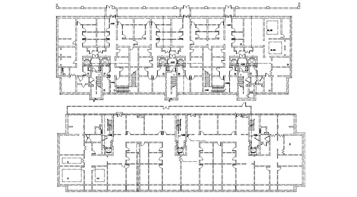 Residential housing apartment design layout plan that shows building staircase, elevators, unit house, and various other details download CAD file for free.