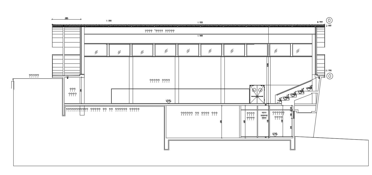CAD drawing details of sport center building section design that shows entrance door design along with seating arrangement details downloads AutoCAD file.
