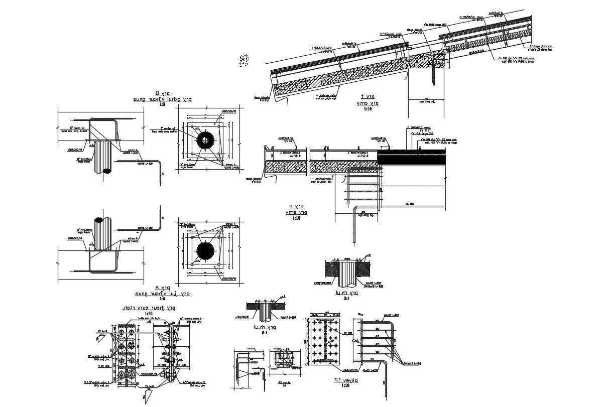 Column and beam structure reinforcement details along with RCC work, concrete masonry, angle section, welded bolted joints, and various other steel structure blocks details download AutoCAD drawing for detailed steelwork.