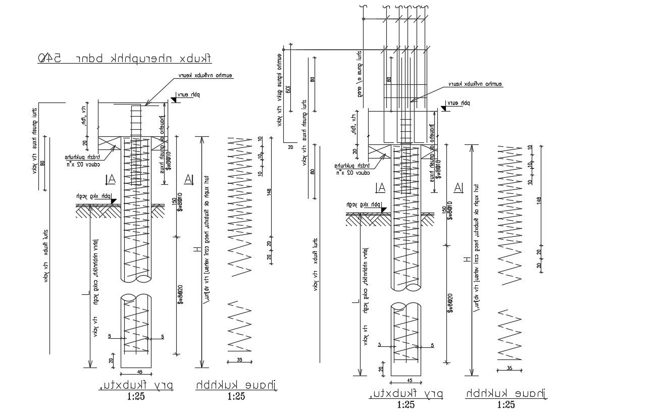 Pile Foundation reinforcement curtailment design that shows reinforcement bars details in tension and compression zone along with main and distribution hook up and bent up bars details and various other RCC structural units details download CAD file for detailed steelwork design.