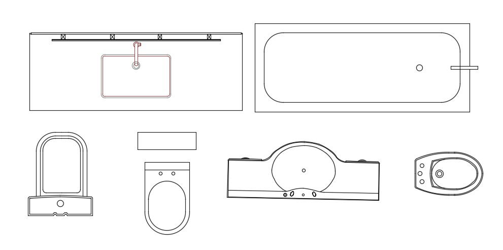 Free Download Toilet Furniture Cad Blocks; this is the simple toilet furniture block that includes a counter basin.commode, and bathtub, its a CAD drawing.