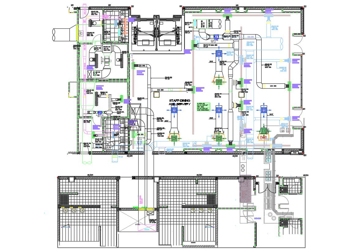 Hospital BuildingHeating Ventilation and Air Conditioning duct design layout plan that shows duct Galvanized steel, insulation panel, Fiberglass duct board, Waterproofing, and various other blocks details download CAD file for free.
