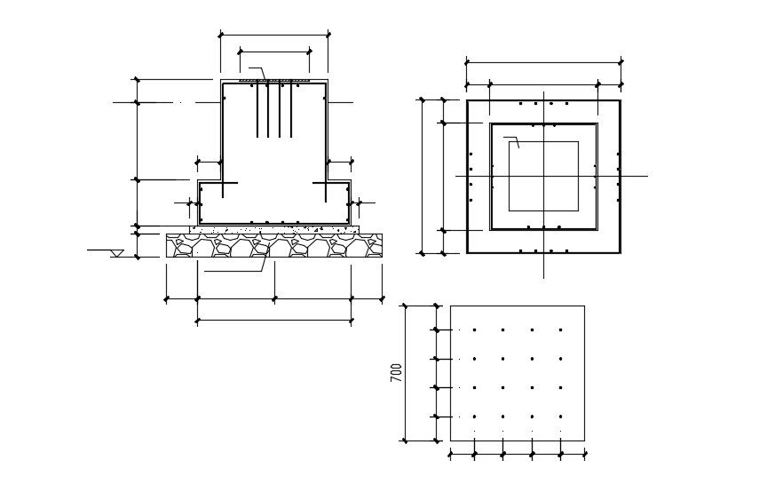Free Download Column Reinforcement Design AutoCAD File; this is a detail of column bars with a plan, section, PCC detail in it, this is the CAD file format.