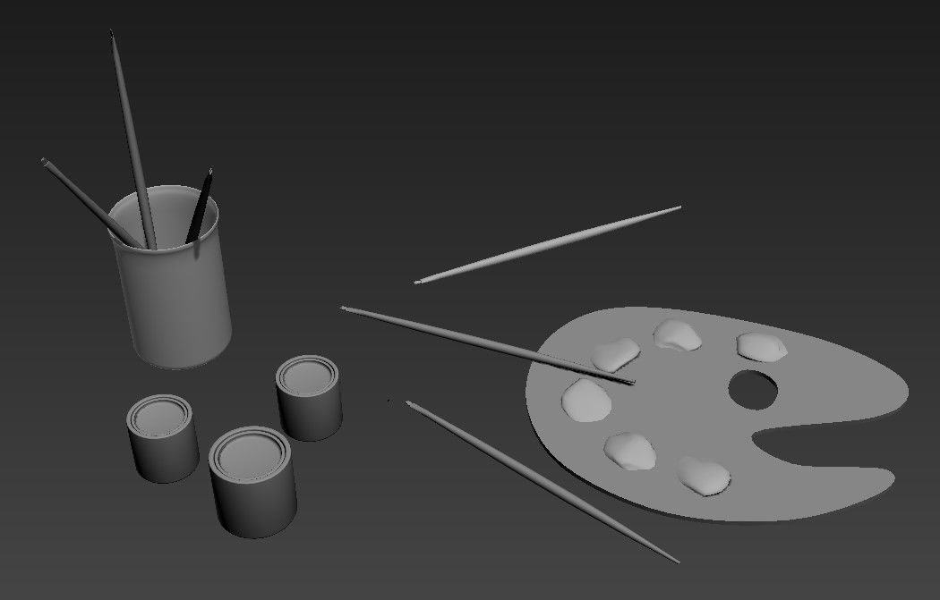 Isometric view of painting brush with tray design 3d model max file download for free.