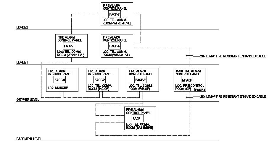 Building Fire alarm design flow diagram system that shows building fire alarm installation details downloads CAD file for free.