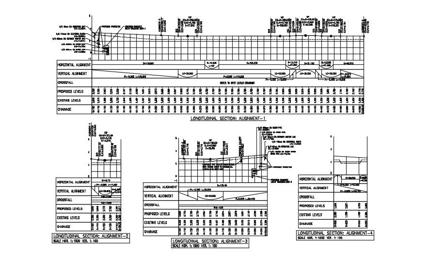 Longitudinal Road Cross Section Drawing; Download AutoCAD file of road cross-section CAD drawing shows a longitudinal profile range of channel gradients, spacing, and length of channel units. representative cross-section upstream of road-stream crossing characterizing channel dimensions at various flows.