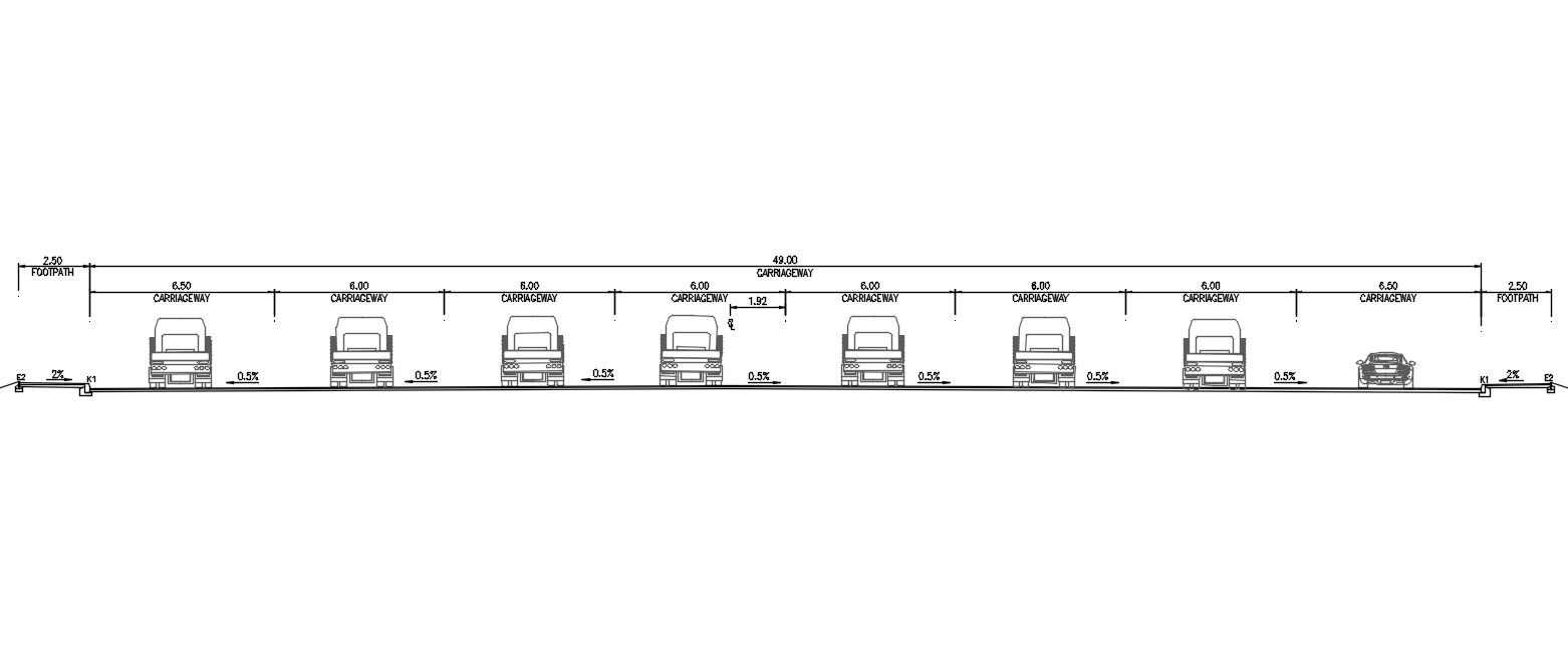 Carriageway Road Elevation Design DWG File; download free AutoCAD file of Carriageway Road Elevation Design with vehicle blocks.
