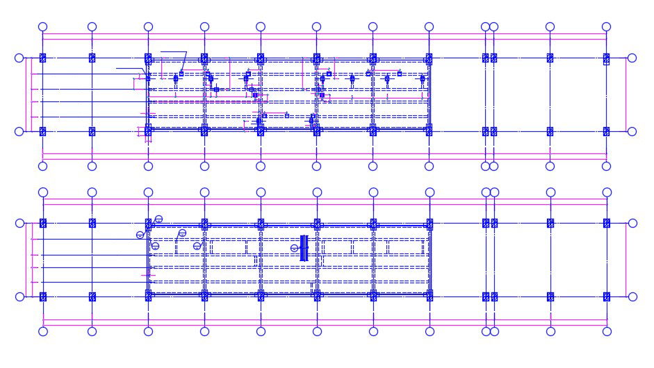 CAD drawing details of column installation layout plan that shows column spacing details along with centerline details download AutoCAD file for free.