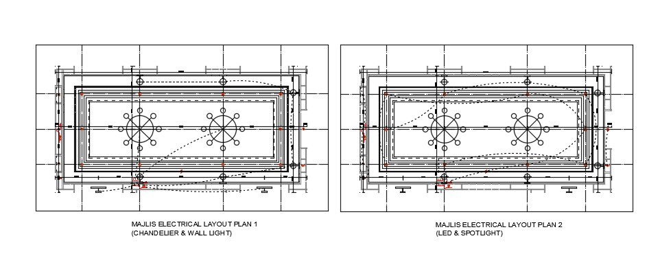 AutoCAD Drawing details of electrical light layout design of chandelier that shows electrical wiring design download File for free.
