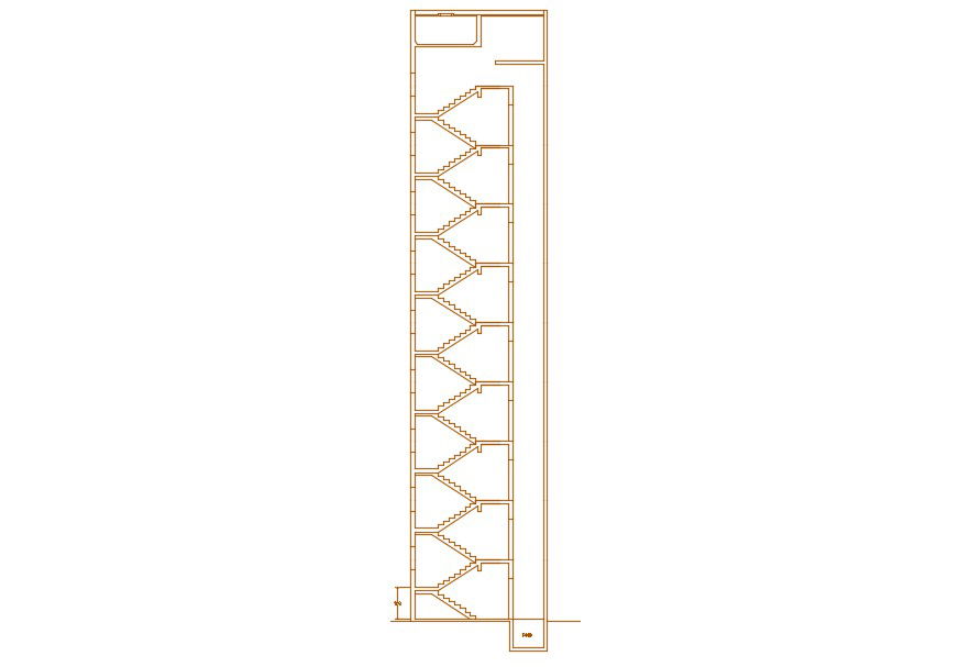 Staircase section design that shows staircase rise and tread details along with landing platform details download CAD file for free.