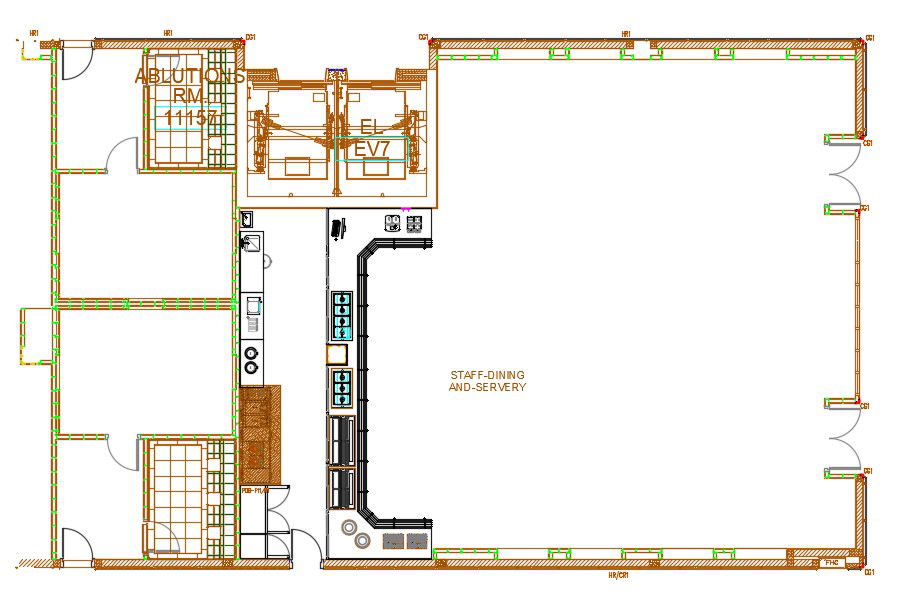 CAD layout plan of office building Staff Dining and Servery Room Design Architecture AutoCAD drawing download for free.