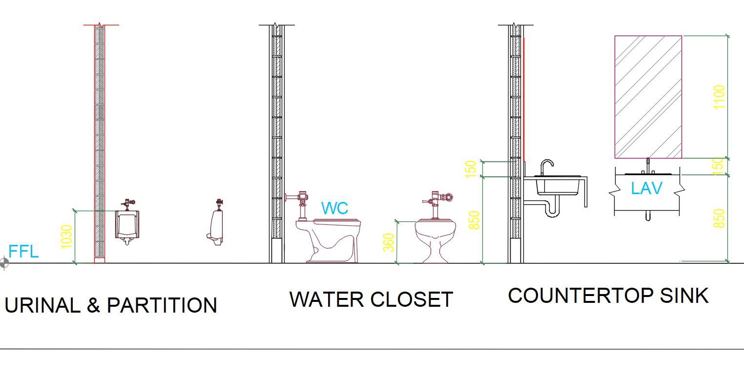 Sanitary Ware Elevation Design DWG File; download free AutoCAD file of Sanitary ware CAD drawing includes water closet toilet, countertop sink and urinal front elevation and side elevation design.