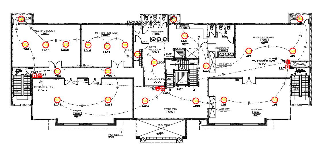 2D Drawing Office Electrical Layout DWG File; this is the electric plan of office building includes ceiling point, switches, bell point, and much more detail related to the electric plan, this is the AutoCAD file format.