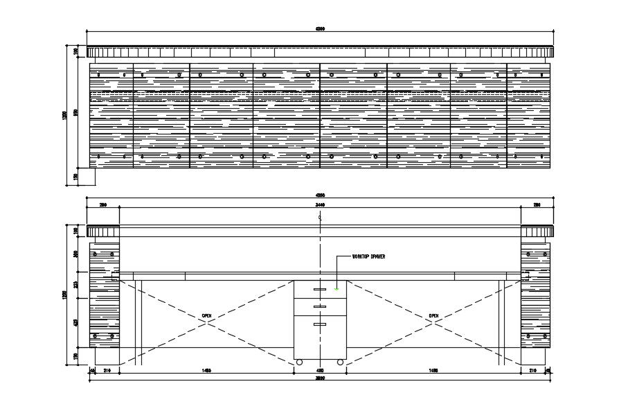 Front elevation and rear elevation design of furniture reception table CAD blocks that shows table size details along with table height details download AutoCAD file for free.