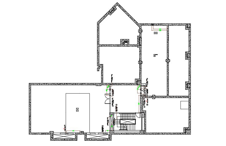 Building layout design plan that shows building room details along with staircase and elevators details download CAD file.