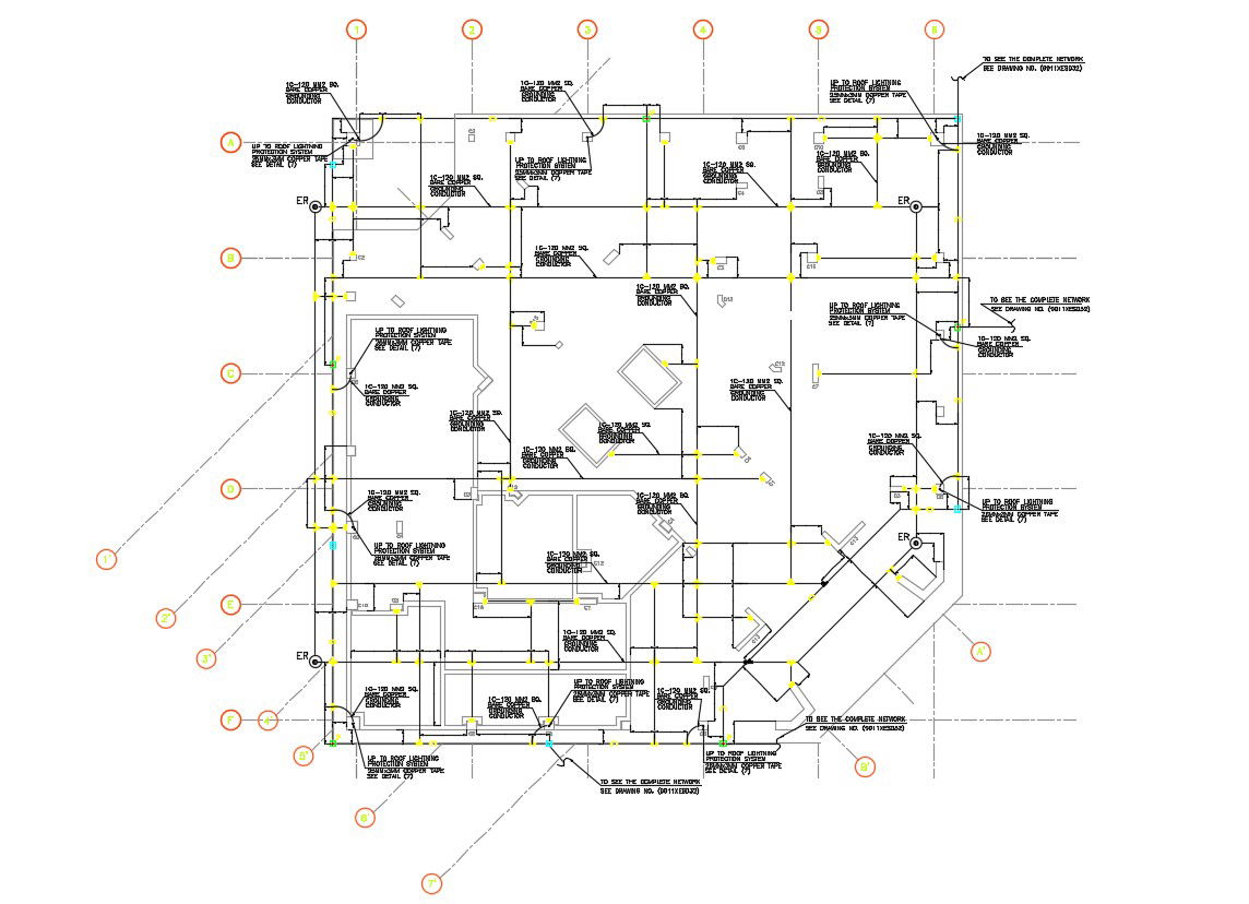 Different Types Of Earthing Systems DWG File; this is the ungrounded neutral system for a commercial building with texting detail, demarcation of bore copper grounding conductor, this is the AutoCAD file.
