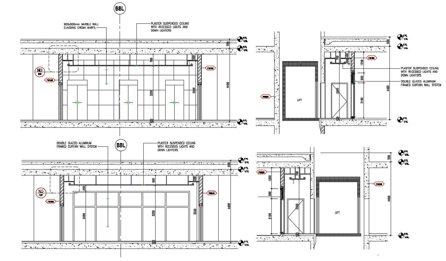 Door Elevator Elevation Design DWG File; download free AutoCAD file of commercial building indoor elevation design CAD drawing shows elevator and office cabin.
