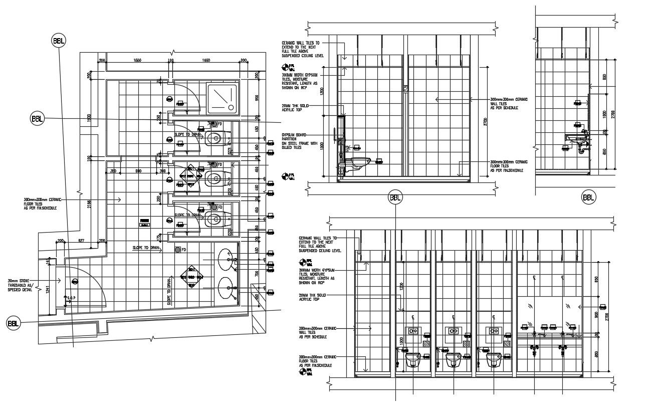 Public Toilet Floor Plan And Elevation DWG File; Download DWG file public toilet floor plan and elevation design CAD drawing shows ceramic flooring and wall tile with sanitary details AutoCAD format.
