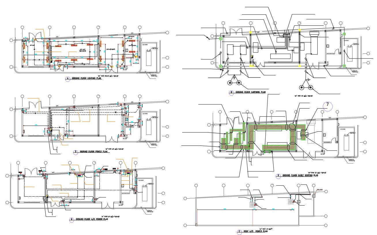 Free Download Electrical Grounding Design Autocad File; this is the different kinds of the electrical plan includes ground floor lighting plan, earthing plan, power plan, A-C cable rooting plan, roof AC power plan, and much more other detail, this is the CAD file.