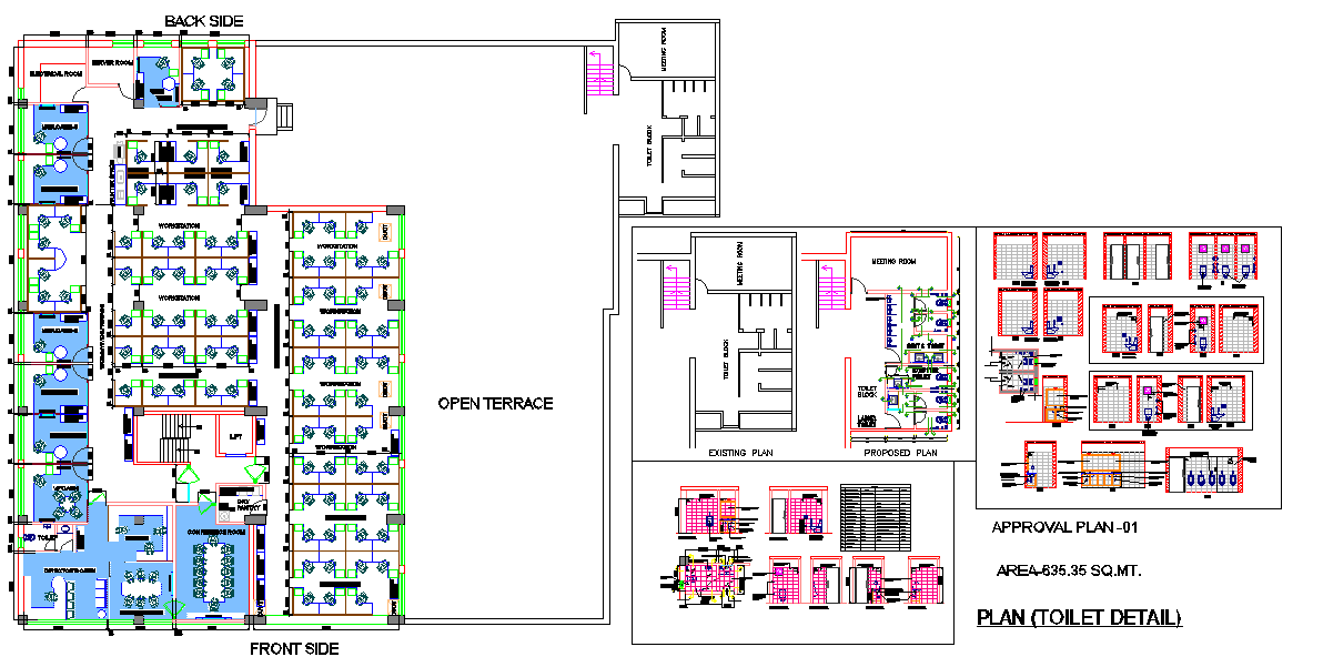 Office & toilet Design. layout plan, section plan, construction plan, plumbing plan, sanitary detail and elevation design, this bathroom for man and women.
