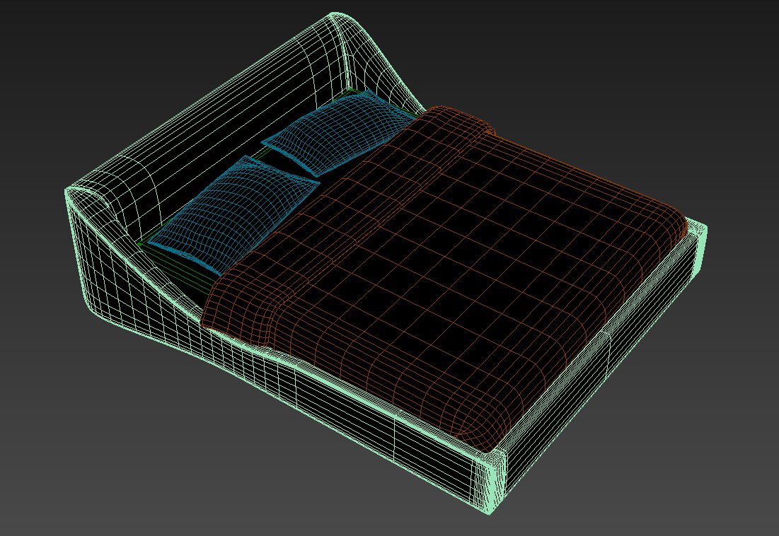 Double bed design 3d model Max file download for free that shows isometric view of furniture blocks.