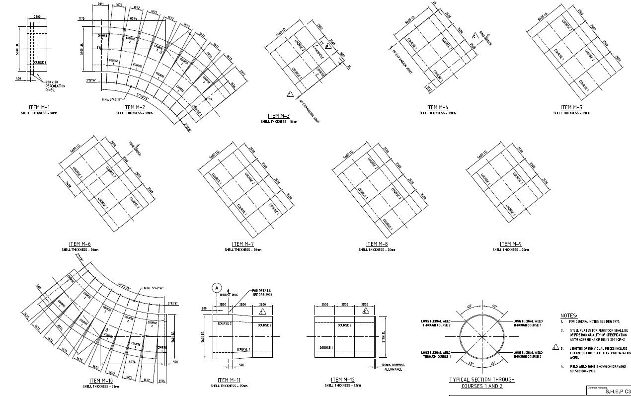 Penstock shell design that shows dimension working set, pipe diameter, shell thickness, and various other components details download PDF File for free.