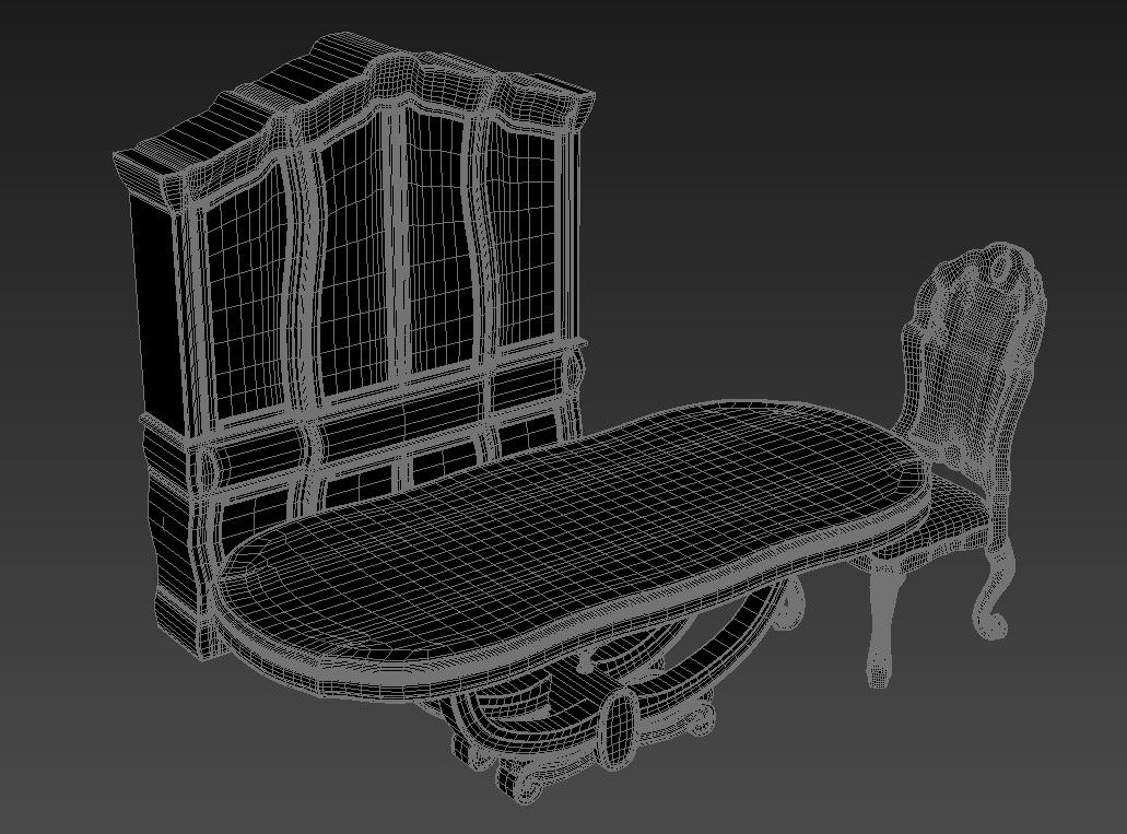 Free Download Rectangle Dining Table, Chair, Cabinet 3D MAX File