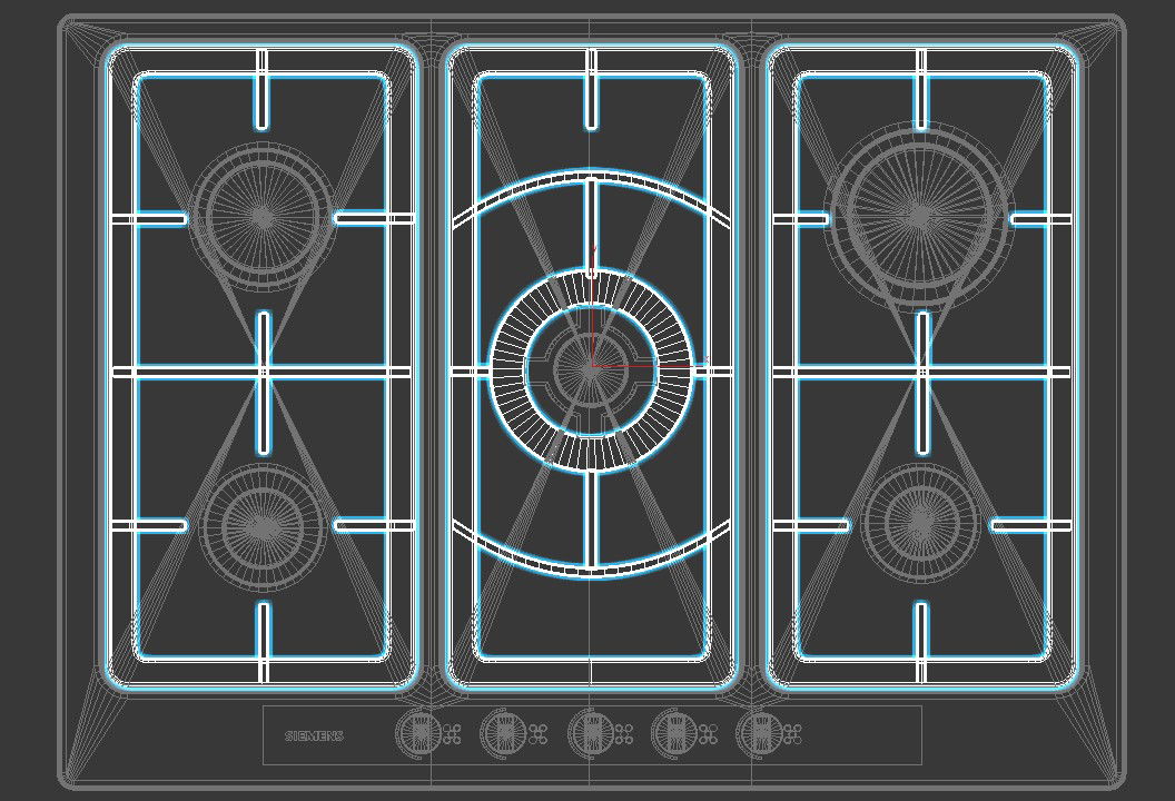 5 Burner Gas Stove Stainless Steel MAX File; download 3d model of 5 burner gas stove MAX file isometric elevation design.