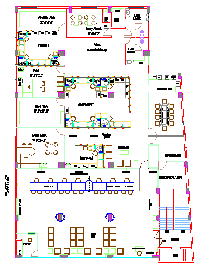 Finance department, Accounts store, Future expansion/storage , Pantry, Sales store, commns area , Server room, etc detail.