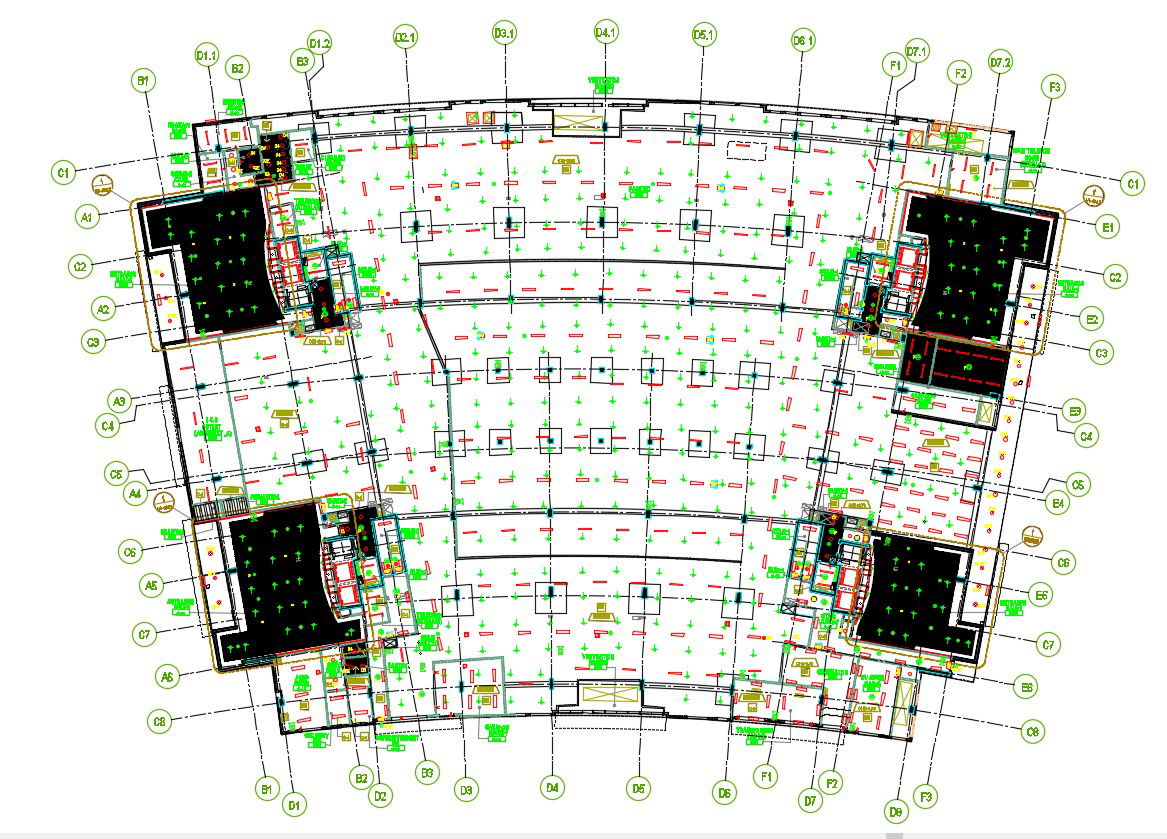 Commercial Building Foundation Plan AutoCAD File; the architecture commercial building CAD drawing shows column foundation detail plan includes a centerline, working drawing dimension, excavation marking detail, stair, lift detail, and cut-outs in the plan in AutoCAD format.