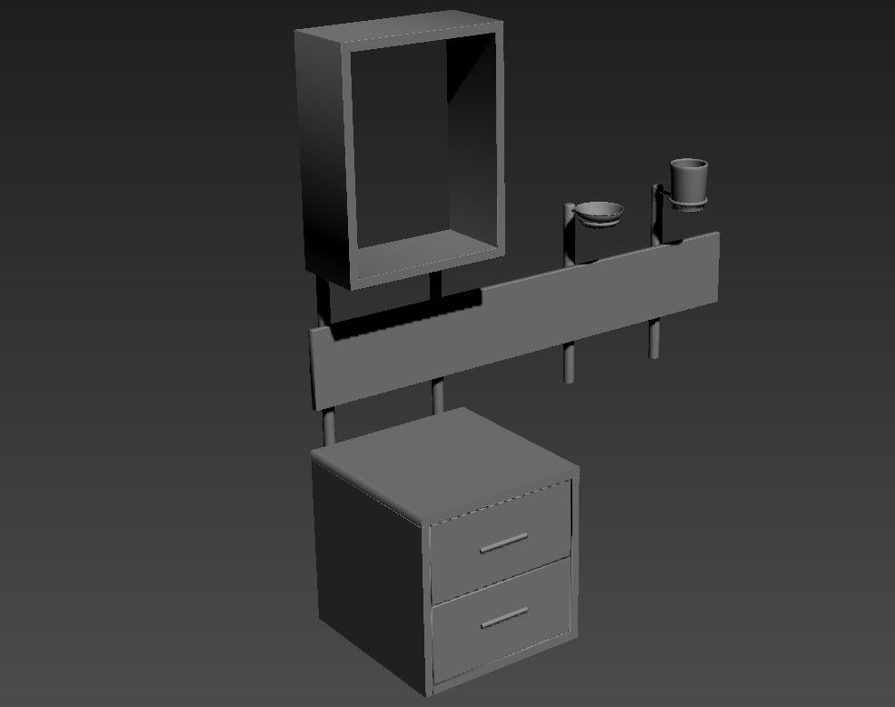 3D Basin Cabinet MAX File; download free MAX file of washbasin cabinet isometric view design.