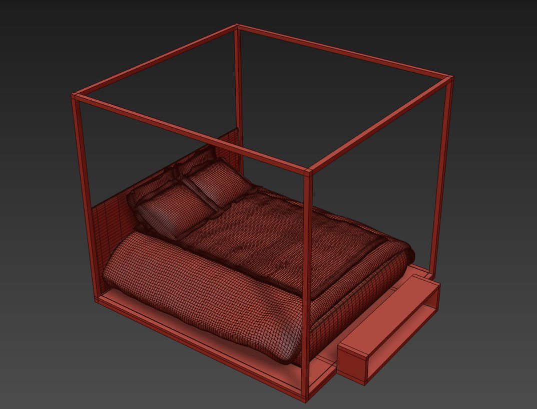 Free Download Bed With Canopy Frame 3D MAX File; A canopy bed is a decorative bed somewhat similar to a four-poster bed. Ornate or decorative fabric is often draped across the upper space between the posts and a solid swath of cloth may create a ceiling or canopy directly over the bed.