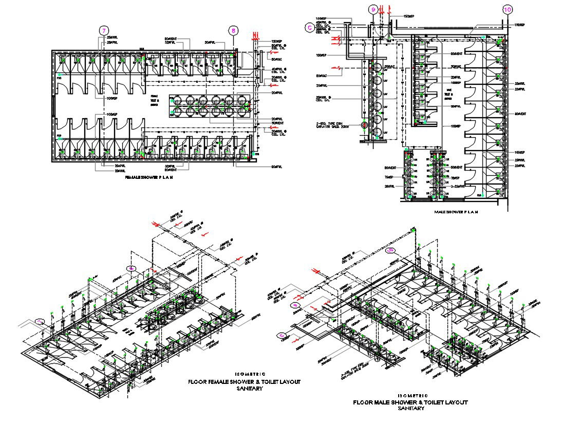 Toilet Plan With Isometric View AutoCAD Drawing; The Toilet floor plan and isometric elevation drawing CAD file shows plumbing installation and sanitary ware of shower and toilet layout plan. download DWG file of isometric toilet and layout plan with dimension details.